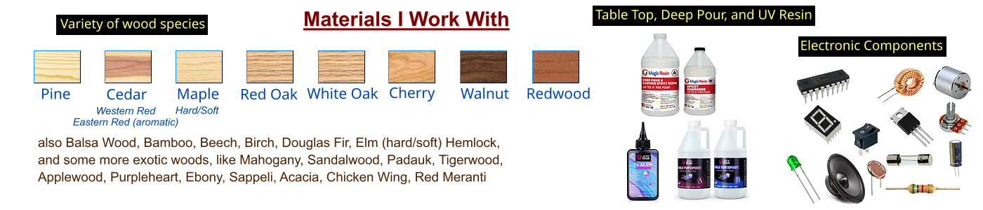 I can make just about anything you want out of wood, or other materials, like glass, plexiglass, metal, and more.
