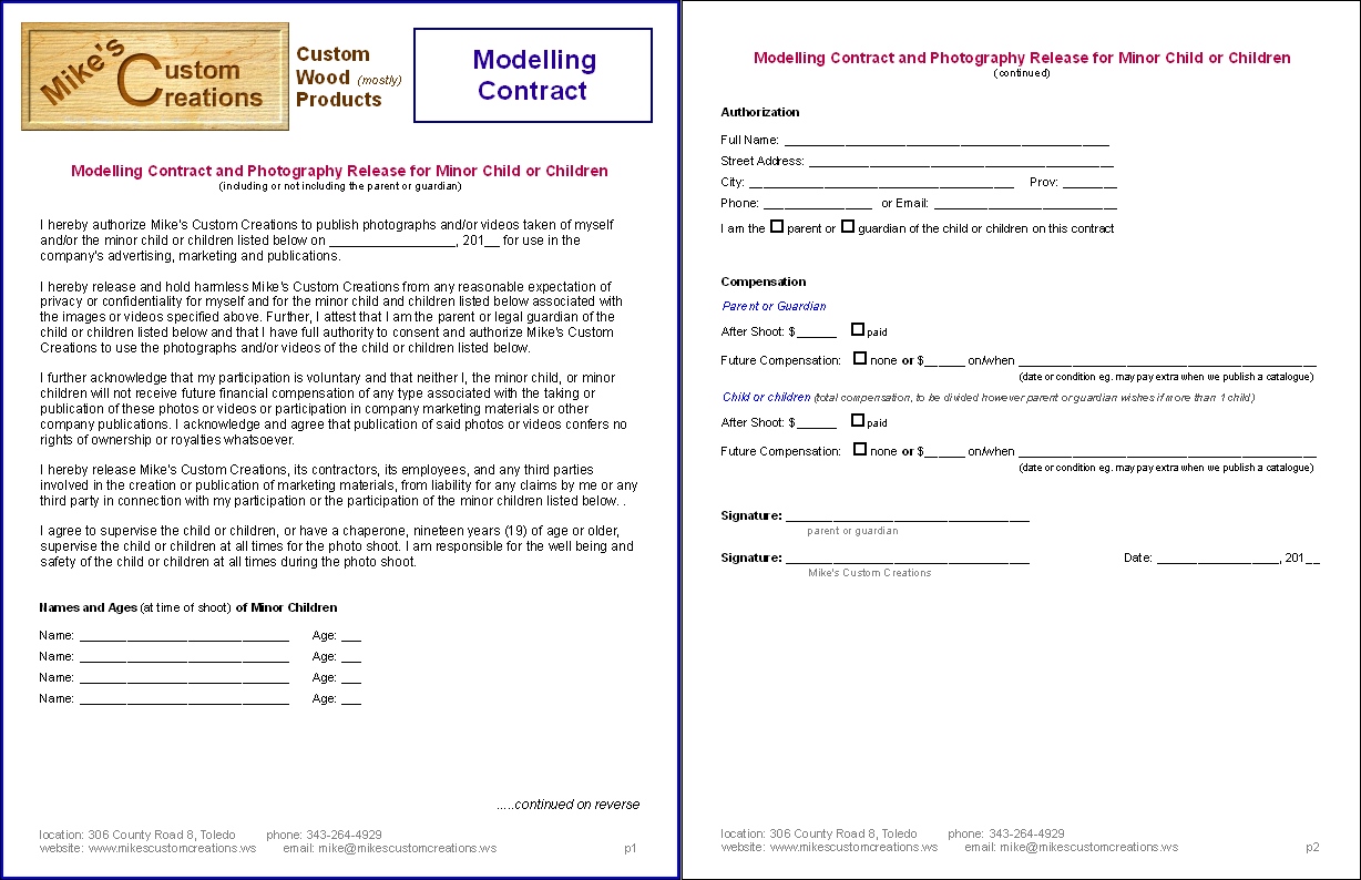 modelling contract (children)