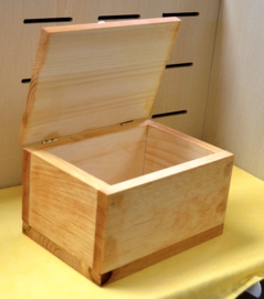 level 1 - assemble with glue and dowels, then paint or decorate as desired - lid sits on top - $18 level 2 - assemble with glue and nails, then paint or decorate as desired - lid can sit on top, or be hinged, requiring screwing hinge on - $16 level 3 - do some finish sanding, and some drilling if you wish, then assemble with glue and nails, screw on hinged lid, then paint or decorate as desired - $15 Order Kit